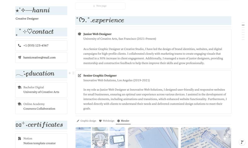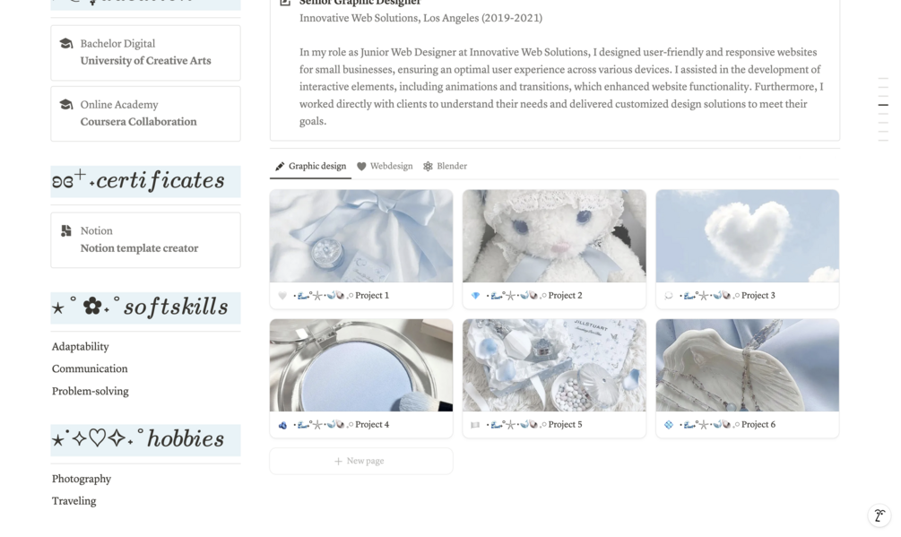 The My Portfolio Notion template is a beautifully designed and highly customizable workspace to showcase your work, achievements, and personal brand. It serves as a digital portfolio, ideal for creatives, professionals, and freelancers looking to present their skills and projects in a polished and organized way.